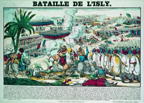 Mais la défaite de l'Isly (→ bataille de l'Isly, 14 août 1844) oblige le sultan du Maroc Abd al-Rahman à refuser toute aide de son hôte, et même à le déclarer hors-la-loi. Dès lors, Abd el-Kader doit en revenir à une lutte de partisans, ce qui lui procure des succès, notamment à Sidi-Brahim et dans la région d'Aïn-Temouchent (→ combats de Sidi-Brahim, septembre 1845). Il opère même en 1846 sa jonction avec les Kabyles et n'est repoussé vers le Maroc qu'avec de grandes difficultés.
