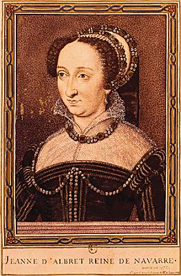 (Pau 1528-Paris 1572), reine de Navarre (1555-1572).