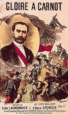 Fils aîné d'Hippolyte Carnot. Polytechnicien et ingénieur des Ponts et Chaussées, il est nommé préfet de la Seine-Inférieure par Gambetta en janvier 1871. Élu député républicain de la Côte-d'Or en 1871, il siège avec la gauche républicaine. Il est ministre des Travaux publics dans les cabinets Waddington (1879), Freycinet (1879) et Ferry (1880), et ministre des Finances dans les cabinets Brisson (1885) et Freycinet (1886). Après le scandale Wilson qui provoque la chute de Jules Grévy, Sadi Carnot, soutenu par Clemenceau, est élu à la présidence de la République (1887). Il est connu pour son respect de l'Église, et sa présence comme chef de l'État favorise le ralliement. Il fait front devant la crise boulangiste (→ boulangisme). En politique extérieure, il favorise la politique de l'alliance russe. Il est assassiné le 24 juin 1894 par l'anarchiste Caserio.