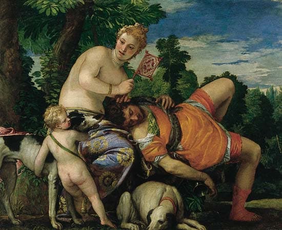 Avec Titien et le Tintoret, le Véronèse est l'une des trois principales figures de l'école vénitienne du cinquecento. Cependant, il venait d'une cité de la Terre Ferme, important foyer de l'art romain, roman, gothique et de la Renaissance. Il se forma au sein de l'école locale, une école éclectique, où le goût de la couleur rencontrait l'influence de Raphaël, de Michel-Ange, du Corrège et du maniérisme. On en perçoit l'écho dans le premier tableau important du Véronèse, une Vierge à l'Enfant trônant au-dessus de deux saints et de deux donateurs, aujourd'hui au Museo di Castelvecchio de Vérone.