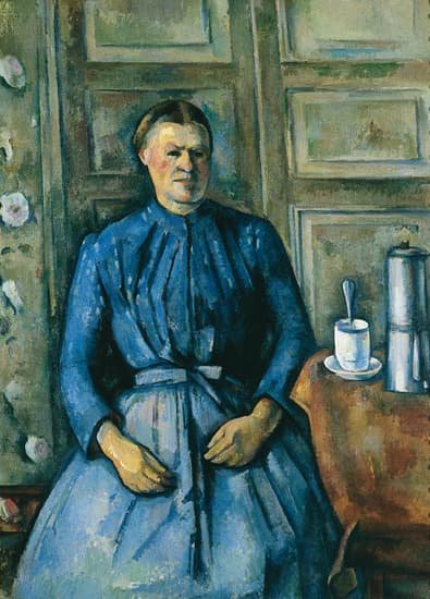 Alors, il éclaircit sa palette, raccourcit sa touche et commence à substituer l'étude des tons au modelé (la Maison du pendu, Auvers-sur-Oise, 1873), réservant l'analyse psychologique aux autoportraits et la rigueur constructive aux portraits (la Femme à la cafetière, v. 1895 ; Madame Cézanne au fauteuil rouge, 1877).