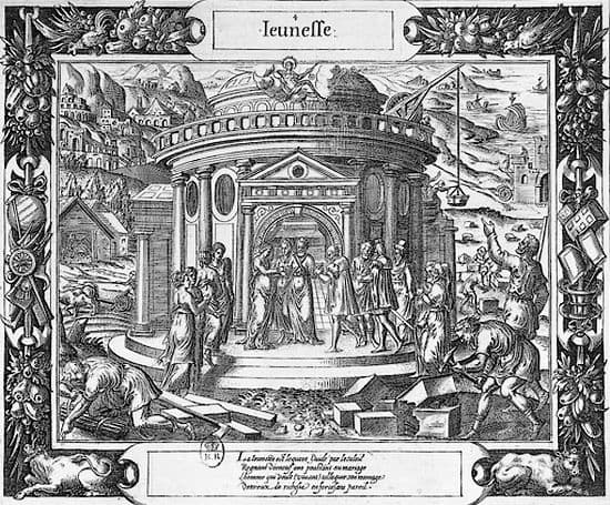 La tradition veut que, de retour d'un voyage en Gascogne, Pierre de Ronsard ait rencontré en 1547, dans une hôtellerie proche de Poitiers, un jeune homme sensiblement du même âge que lui en qui il reconnaît quelqu'un de son « parentage ». Ce jeune homme était Joachim du Bellay (1522-1560), alors étudiant en droit à Poitiers. De cette rencontre allait naître quelques années plus tard la Pléiade.