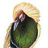 Identification : plumes de parade formant en permanence un plastron triangulaire bleu-vert métallisé.