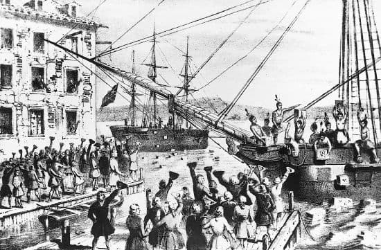 Fondée en 1630, Boston joua un rôle capital dans le déclenchement de la guerre de l'indépendance par son opposition aux taxes nouvelles (réprimée par le massacre de Boston) et aux droits de douane, imposés sur le thé (Boston tea party, 1773).