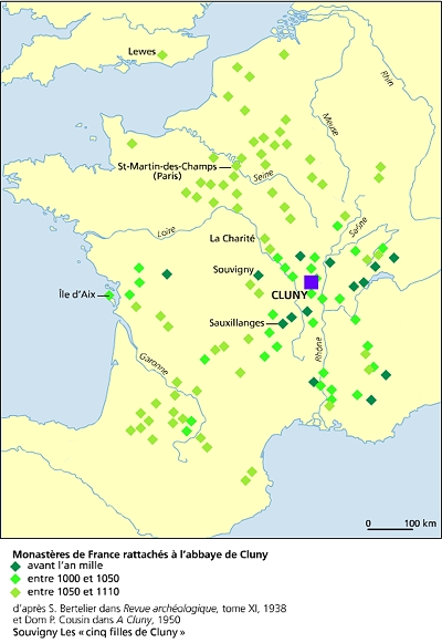Mais sortent du même fonds les autres mouvements réformateurs, qui ne manquent pas en ce xe s. : en Bourgogne, Saint-Bénigne de Dijon ; en Lotharingie, Brogne près de Namur, Gorze près de Metz, Saint-Vanne de Verdun et Stavelot ; dans l'Ouest, Jumièges, Saint-Evroult et Fleury, sur la Loire. Comme, au surplus, tous ces monastères, même s'ils ne sont pas liés juridiquement, ne sont pas sans se connaître et s'apprécier, le jeu mutuel des influences est fort complexe. Si donc elle n'est pas isolée, d'où vient que la réforme clunisienne prédomine si massivement ? On a fait valoir certains atouts, réels sans doute, mais non décisifs : le lieu, la charte de fondation, une succession de grands abbés, l'organisation.