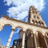 Le plus important monument de Split est le palais de Dioclétien, le seul palais romain dont les murs demeurent en partie ; à la fois résidence et camp militaire, il était caractérisé par sa somptueuse façade le long de la mer et par les puissantes murailles à tours carrées qui l'entouraient des trois côtés sur la terre ferme. Split est également un important centre de la civilisation croate. L'époque préromane et l'époque romane y ont laissé les petites églises voûtées qui caractérisent le style « vieux-croate » : Sainte-Trinité à six lobes, basilique Saint-Nicolas, chapelle Saint-Martin dans un couloir du palais, toutes du ixe s. ; Notre-Dame-du-Clocher, des xe s.-xie s. L'art roman et l'art gothique y apparaissent dans une seule et même expression, sous forme d'un roman qui tend à se structurer à la manière gothique, avec une prédominance des ouvertures et des membrures. Les exemples les plus marquants en sont le grand clocher de la cathédrale (xiiie s.-xive s.) ainsi que son portail sculpté (xiiie s.), œuvre d'Andrija Buvina, dont le style s'apparente à celui du maître Radovan, son contemporain de la cité voisine de Trogir (portail de la cathédrale, 1240). Au xve s. fut construit l'hôtel de ville en style gothique fleuri (rénové au xixe s.). Dans le milieu du siècle travaillait à Split l'architecte et sculpteur Georges le Dalmate (Juraj Dalmatinac [† 1473]), maître principal de la cathédrale de Šibenik ; il a notamment construit à Split le palais Papalié (aujourd'hui musée de la ville), dans ce même gotico fiorito, et l'autel de saint Anastase (à la cathédrale), dont le relief de la Flagellation représente un des sommets de l'art croate.